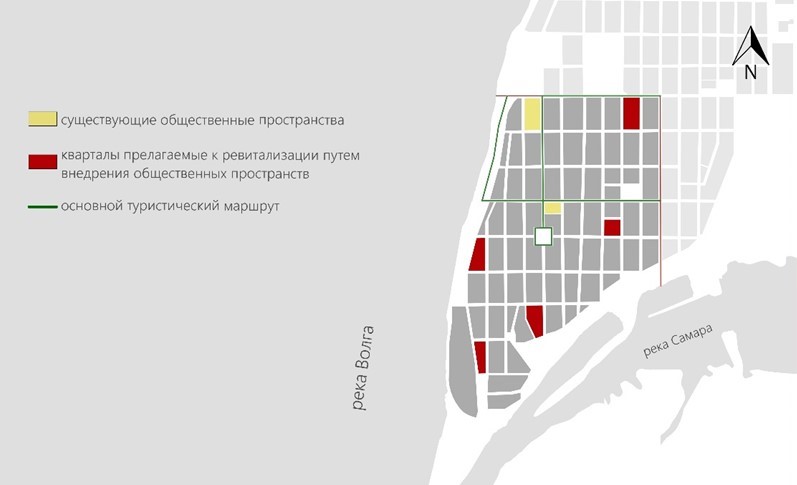 Рис. 7. Концепция развития новых общественных пространств в исторической части Самары