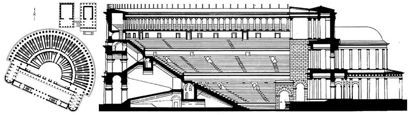 Рис. 3. План и разрез театра Марцелла, Рим, II в. до н.э. (eternal-city.ru)