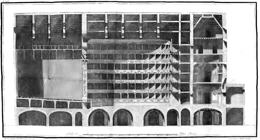 Рис. 10. Разрез 1-1 театра «Tor di Nona» в Риме, Италия, 1675 г., арх. Карло Фонтана (theatre-architecture.eu)