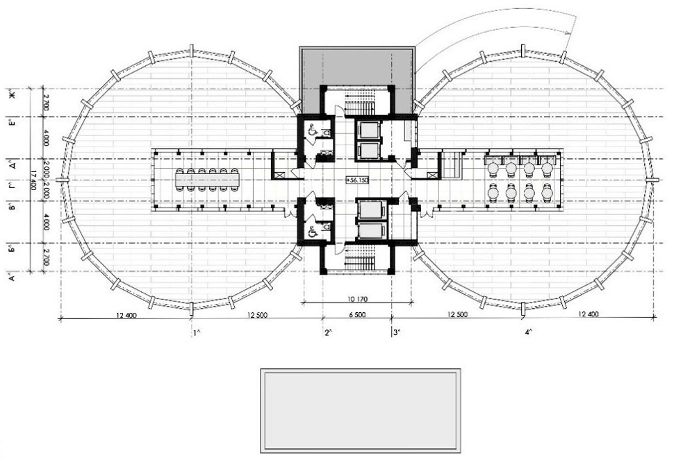 Рис. 32. План на отметке +56,150 м. (11 этаж). Ресторан