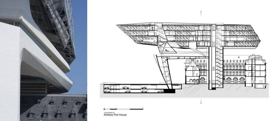 Рис. 6. Здание администрации порта Антверпена, Бельгия. Фото и разрез. [7]