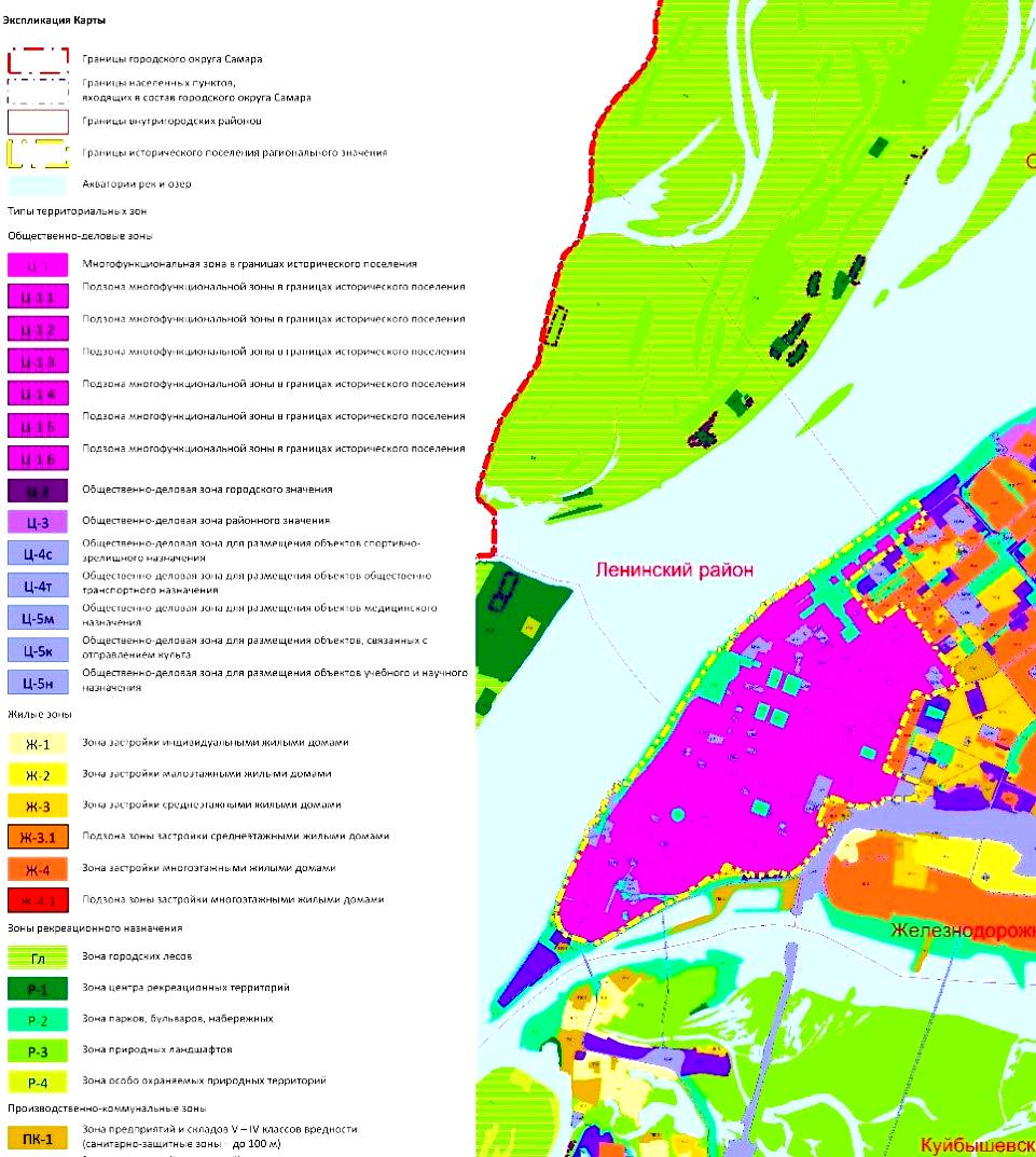 Рис. 2 Карта градостроительного зонирования г. Самары
