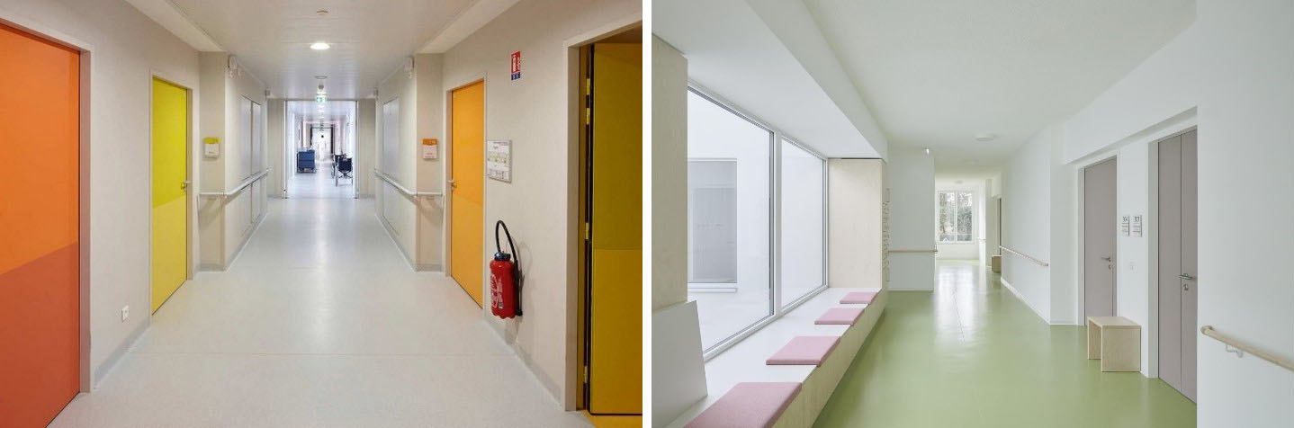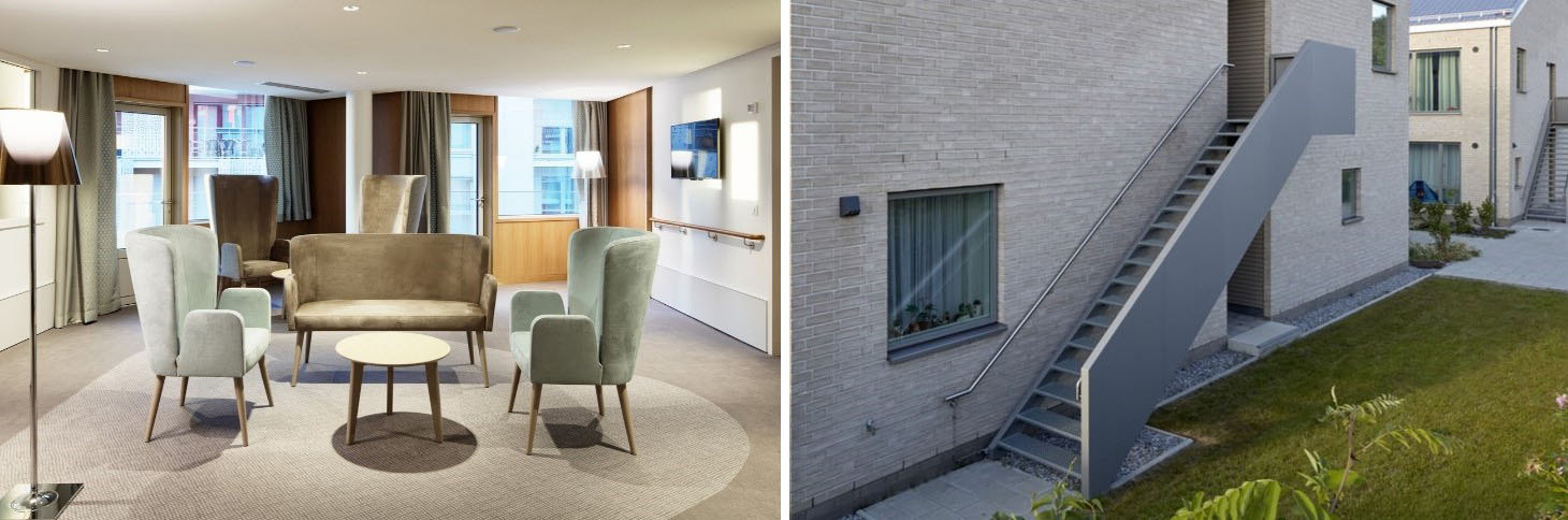 Рис. 1. Принцип 1 универсального дизайна: Monconseil Retirement Home, 2010, Франция, Арх.: Atelier Zundel & Cristea и Retirement Home of the Franciscan Sisters in Vienna, 2020, Австрия, Арх.: Schenker Salvi Weber Architekten (archdaily.com)