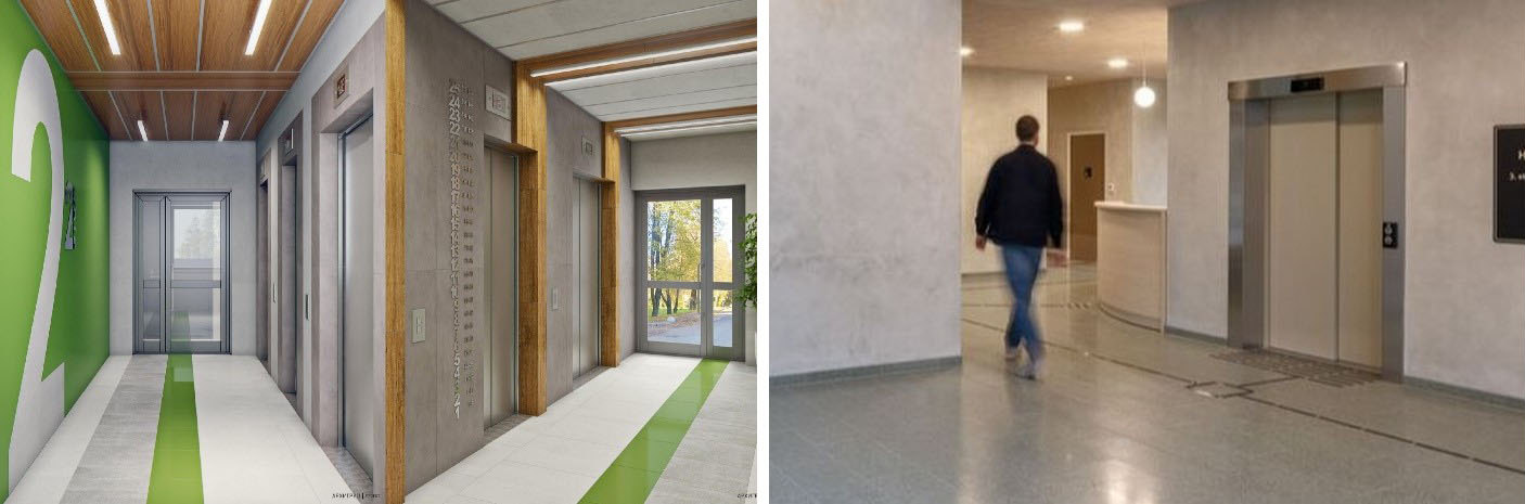 Рис. 3. Принцип 3 универсального дизайна: Nursing аnd Rеtirеmеnt Hоmе Bеllinzonа, 2017, Швейцария, Арх.: Studiо Gaggini, Nicolа Probst Architetti и 92-Bed Nursing Home, 2014, Франция, Арх.: Dominique Coulon & associés (archdaily.com)