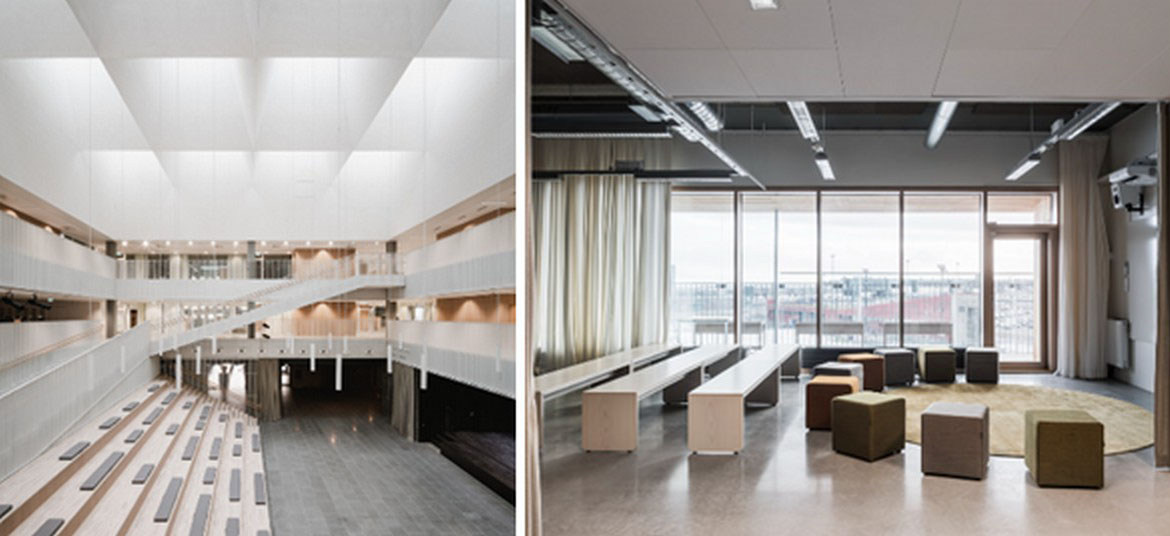 Рис. 3. Холл и учебный класс школы «Jätkäsaari Comprehensive School»