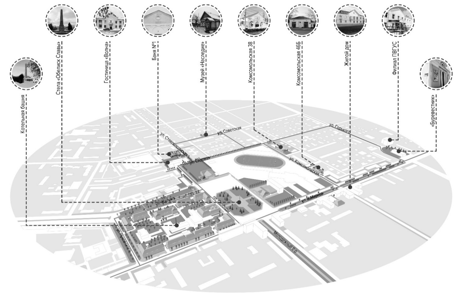 Рис. 2. Значимые объекты исторического центра Тольятти