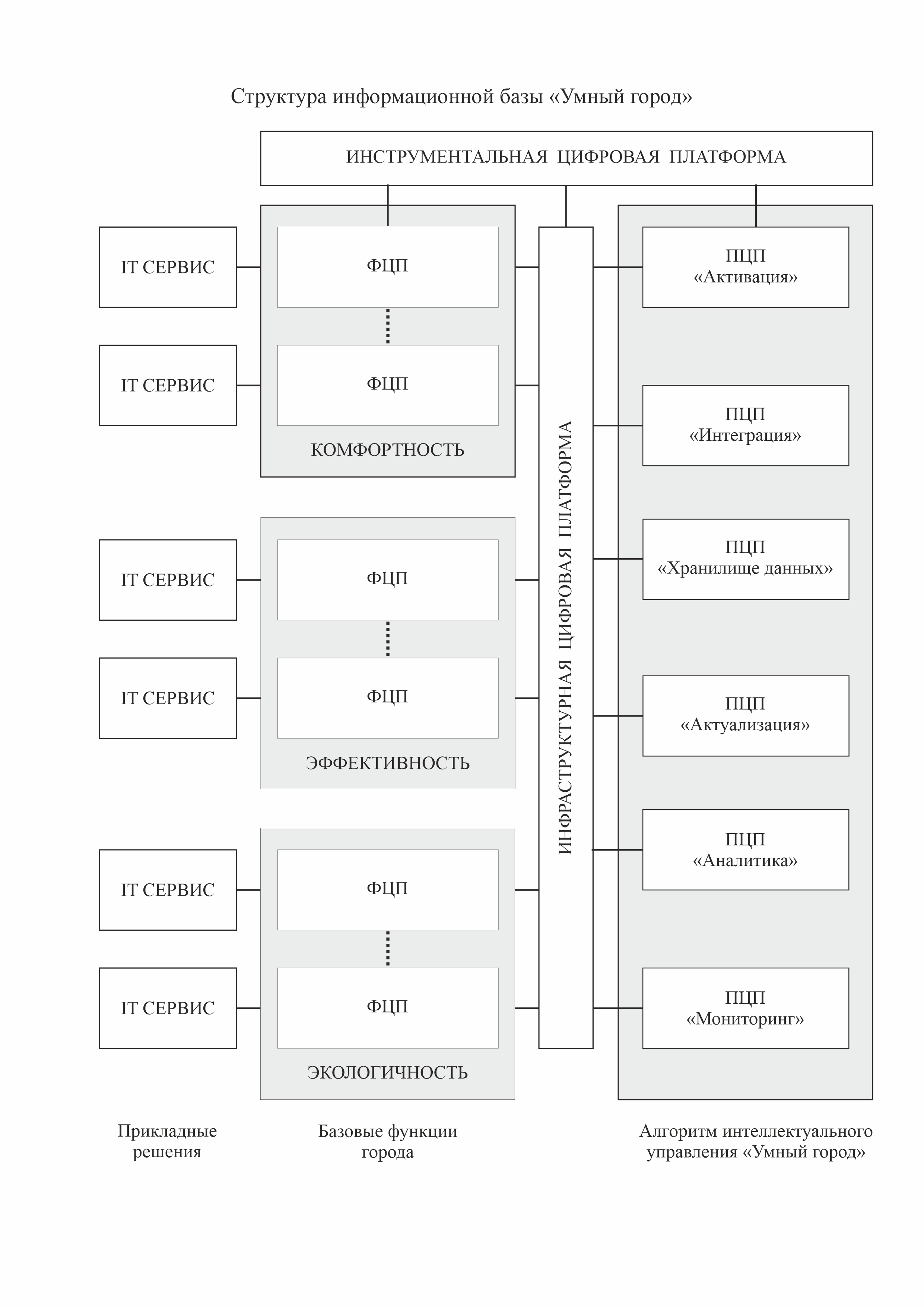 Рис. 2. Структура информационной базы «Умный город»: ПЦП – Прикладная цифровая платформа ФЦП – Функциональная цифровая платформа