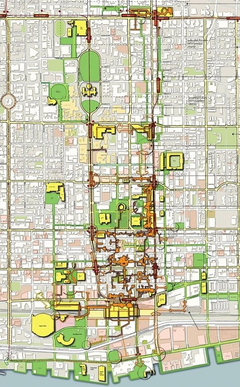 Рис. 1. Схема подземного многоуровневого комплекса PATH в Торонто