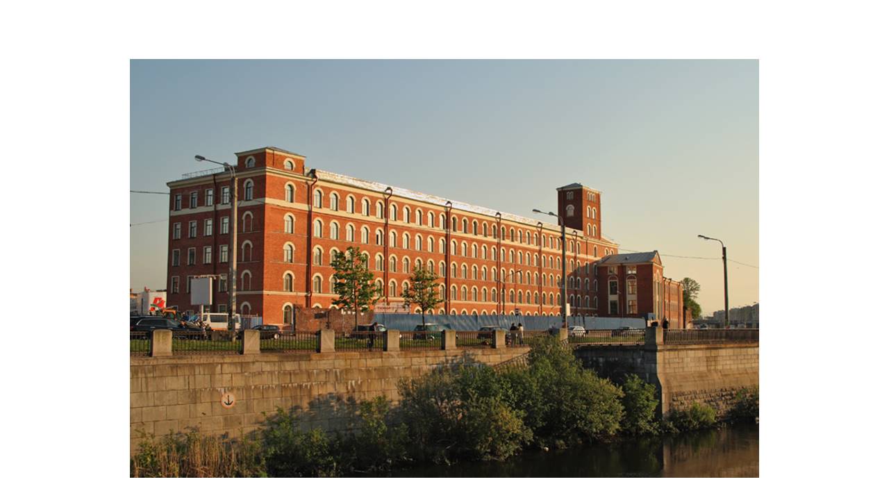 Новая бумагопрядильная мануфактура – одно из петербургских предприятий, построенных по типу первых английских машинных фабрик (рис. 6). Это здание было построено в 1846 г. [1, c. 238]. В то время в Петербург из Англии морским путем поставлялись хлопок и уголь, а также первые ткацкие станки и металлические конструкции каркаса. По Обводному каналу материалы доставлялись из Петербургского порта. В основном строительство главного корпуса было закончено в 1850 г. В 1851–1906 гг. к зданию пристраивались новые корпуса и башни, часть из которых не сохранилась [1, c.240].