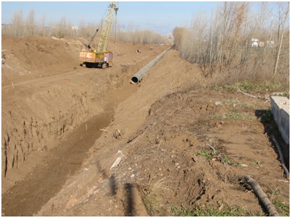 Рис. 3. Строительство нового коллектора диаметром 1400 мм вдоль Южного шоссе в процессе реконструкции Безымянского коллектора на левом берегу р. Самары