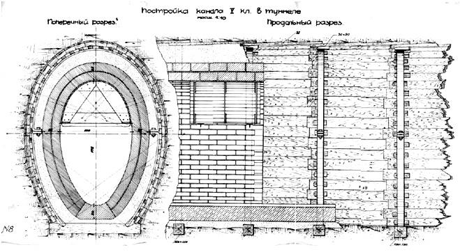 Следует отметить, что в Самаре в 1911–1914 гг. при реализации проекта инженера В.Г. Линдлея по строительству общесплавной канализации участок коллектора 1000х1750 мм из кирпича (рис. 7) протяженностью 750 м вдоль склона р. Самары и два других участка канализации, проложенных вдоль склона р. Волги, были построены закрытым способом в виде тоннеля на глубине 8–19 м. В советский период большинство крупных канализационных коллекторов диаметрами 1500–2000 м тоже были построены закрытым способом с применением проходческого щита.
