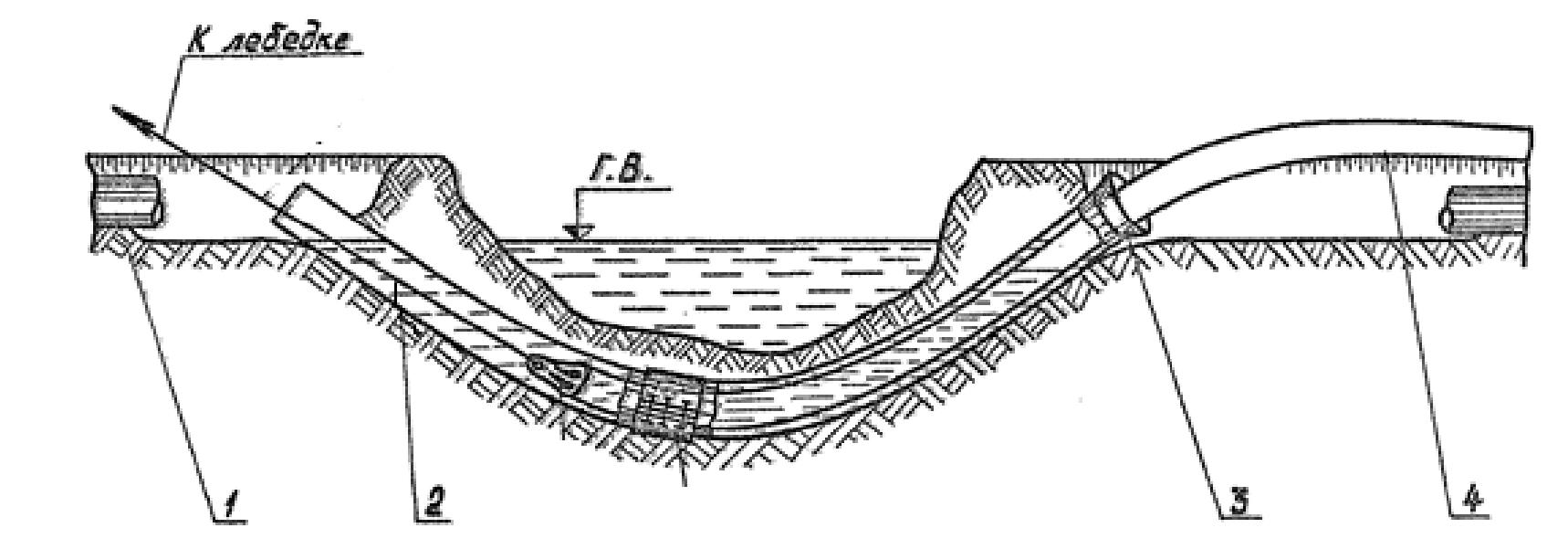 Рассмотрим основные схемы укладки нефтепровода при траншейном способе устройства подводного перехода нефтепровода [8].