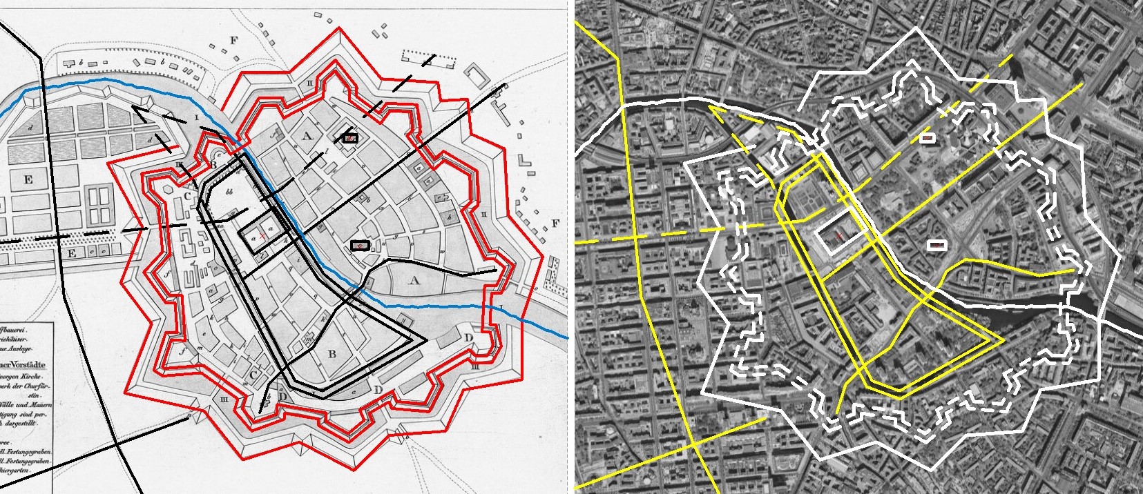 Рис. 1. Очертания крепостных укреплений Берлина XVII века на «теле» современного города [https://ru.wikipedia.org/wiki/Фридрихсвердер]