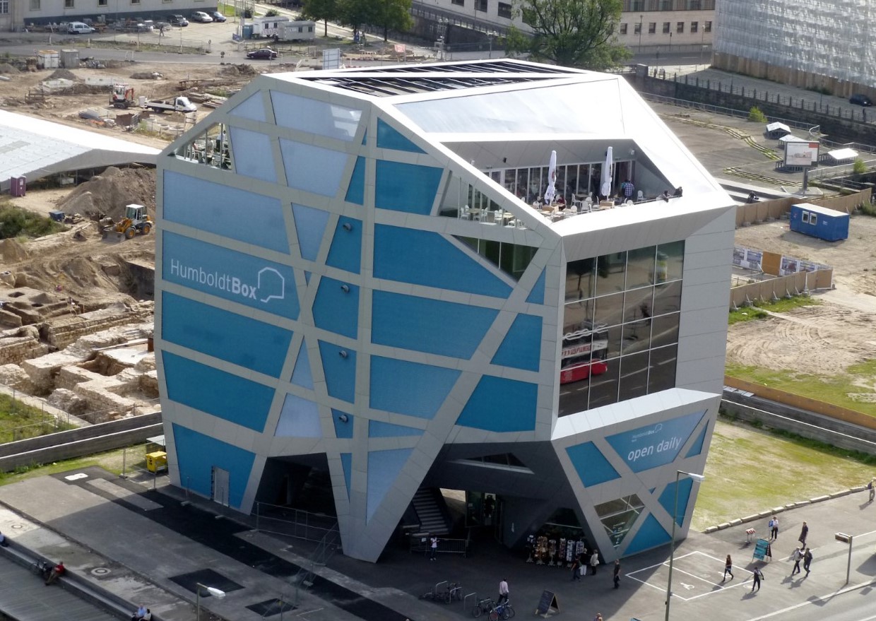 Humboldt-Box – временное выставочное сооружение на Дворцовой площади в центре Музейного острова, построенное напротив Люстгартена в 2011 г. как информационный центр на период восстановления Берлинского городского дворца и подготовки для открытия в нем Гумбольдт-форума. Это сооружение с загадочными очертаниями и сетчатой структурой на фасаде, словно «Машина времени», прибывшая из прошлого и устремленная в будущее, могло перенести своих посетителей в обоих направлениях. Humboldt-Box знакомил всех желающих с историей этого места и концепцией его будущего использования в музейных целях. В составе экспозиции в Выставочном павильоне Humboldt-Box был представлен макет Музейного острова, отражающий его состояние на момент конца XIX – начала XX в.