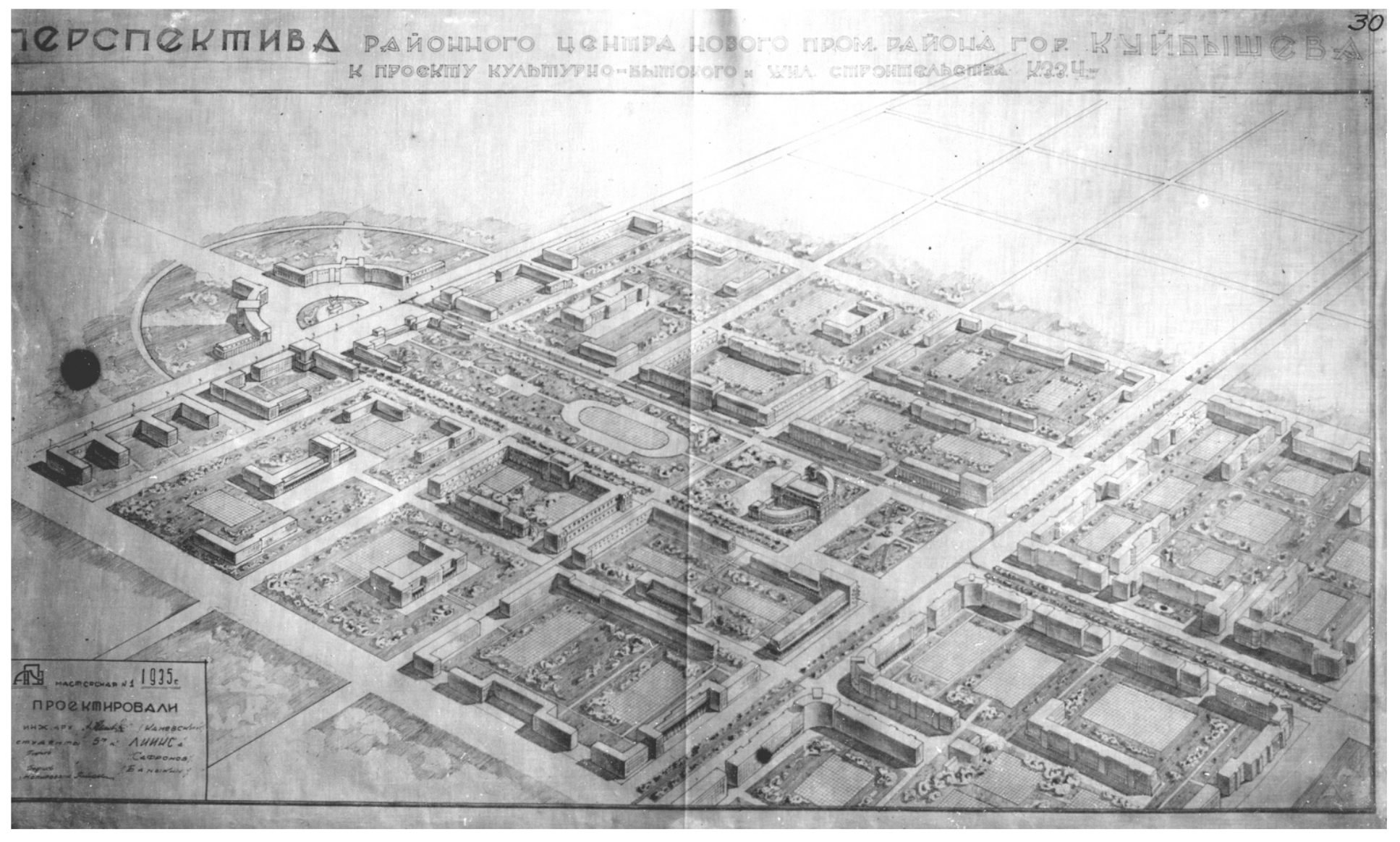 Рис. 2. Проект Районного центра нового промышленного района г. Куйбышева, руководитель А.Л. Каневский, 1935