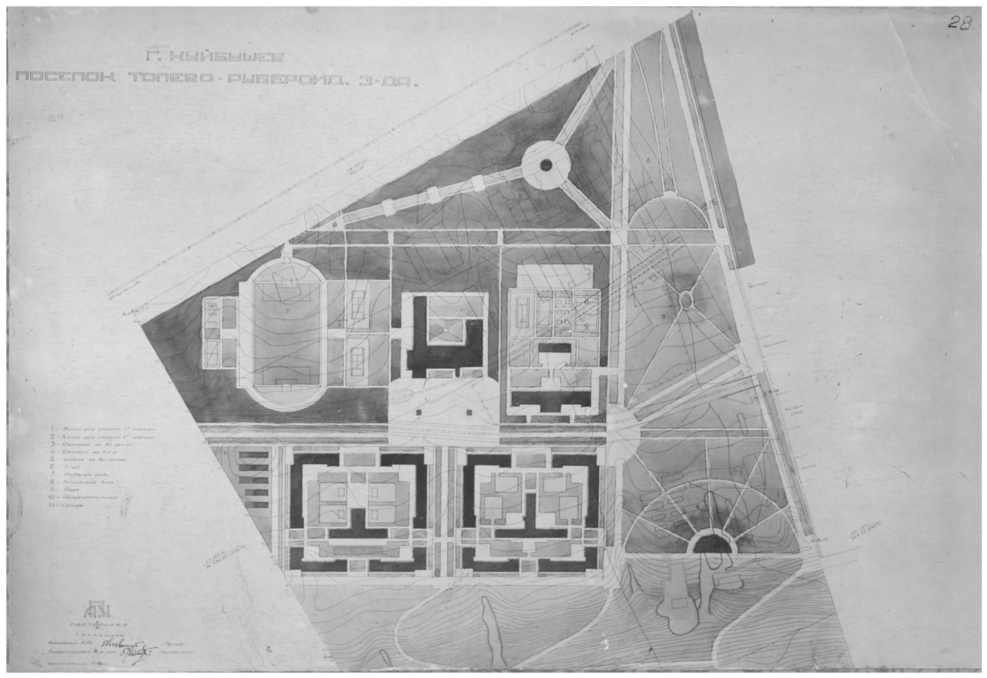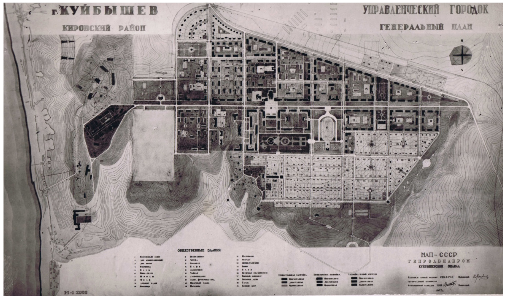 Рис. 9. Генеральный план Управленческого городка, Гипроавиапром, Куйбышевский филиал, архитектор: главный архитектор А.Л. Каневский, 1947