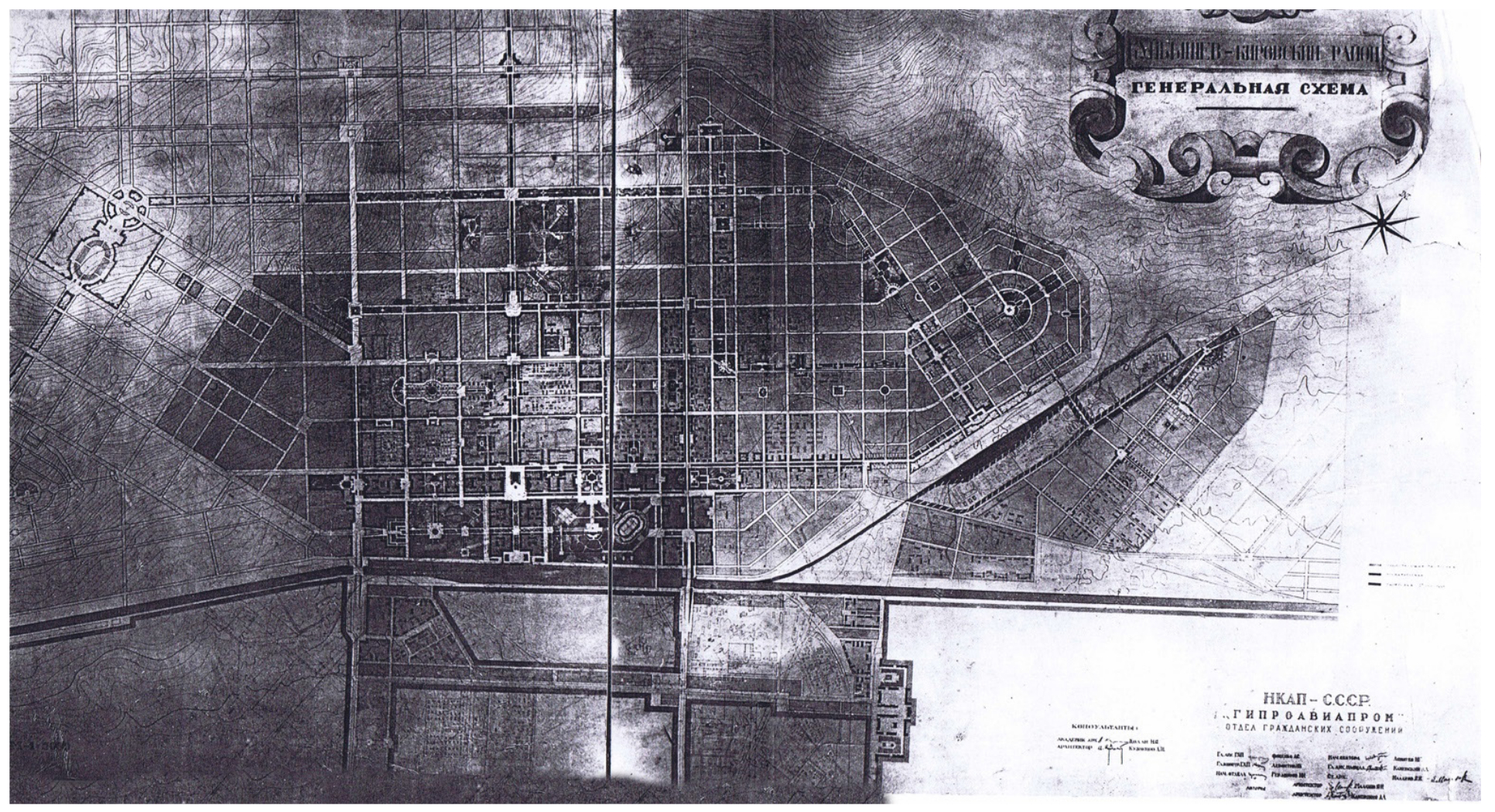 Рис. 1. Генеральный план развития города Куйбышева (1934-1937), руководитель инженер-архитектор А.Л. Каневский