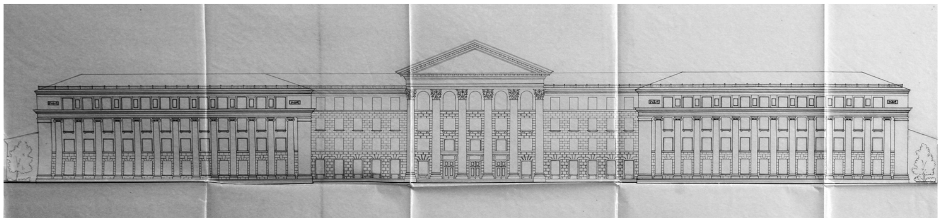 Рис. 10. Сельскохозяйственный институт в Кинеле, авторский коллектив: управляющий проектной конторой «Горпроект» В.Ф. Зарайсков, главный инженер П.Н. Ашитко, архитекторы А.Л. Каневский, С.А. Шишкин, И.А. Лазарева, 1951-1953