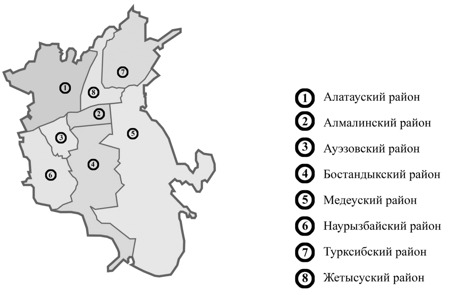 Рис. 1. Административное деление города Алматы