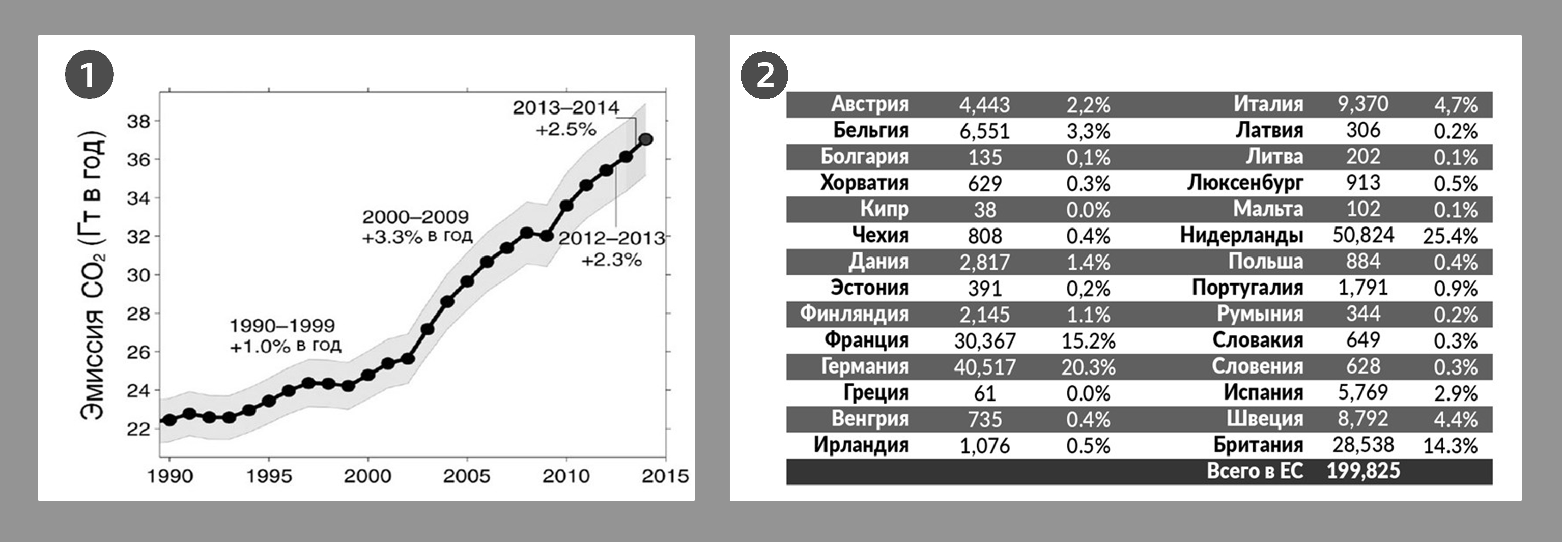 1 – рост количества общемирового объёма эмиссии CO2 [7];