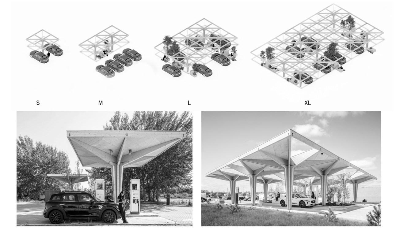 Ключевой особенностью проекта архитектурного бюро COBE для трассы Е20 (рис. 2) является его модульность и возможность создавать различные конфигурации зарядных станций на основе базовых элементов, тем самым создавая возможность адаптировать инфраструктуру зарядных станций под требования конкретной территории.