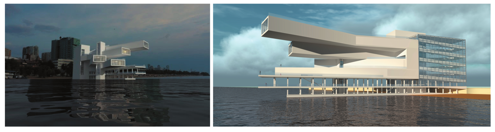 Сегодня самарским архитектором Д.Ю. Храмовым предложен эскиз здания современного искусства, расположенный на набережной Волги в Самаре (рис. 1). По замыслу автора проектируемое здание весьма выразительно и может претендовать на здание нового архитектурного акцента города. Однако эта задача является достаточно сложной с конструктивной точки зрения и требует дополнительного анализа и исследования в области существующих конструктивных схем, материалов и принципиальных подходов к реализации данных проектов.
