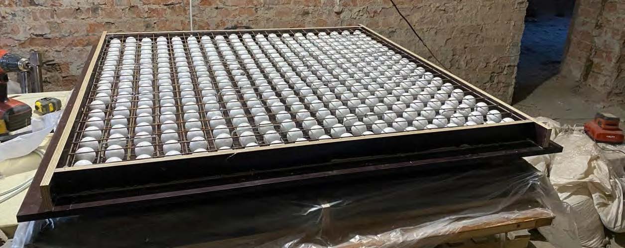 Рис. 1. Общий вид опалубки с установленными сетками нижнего, верхнего армирования и сферическими пустотообразователями