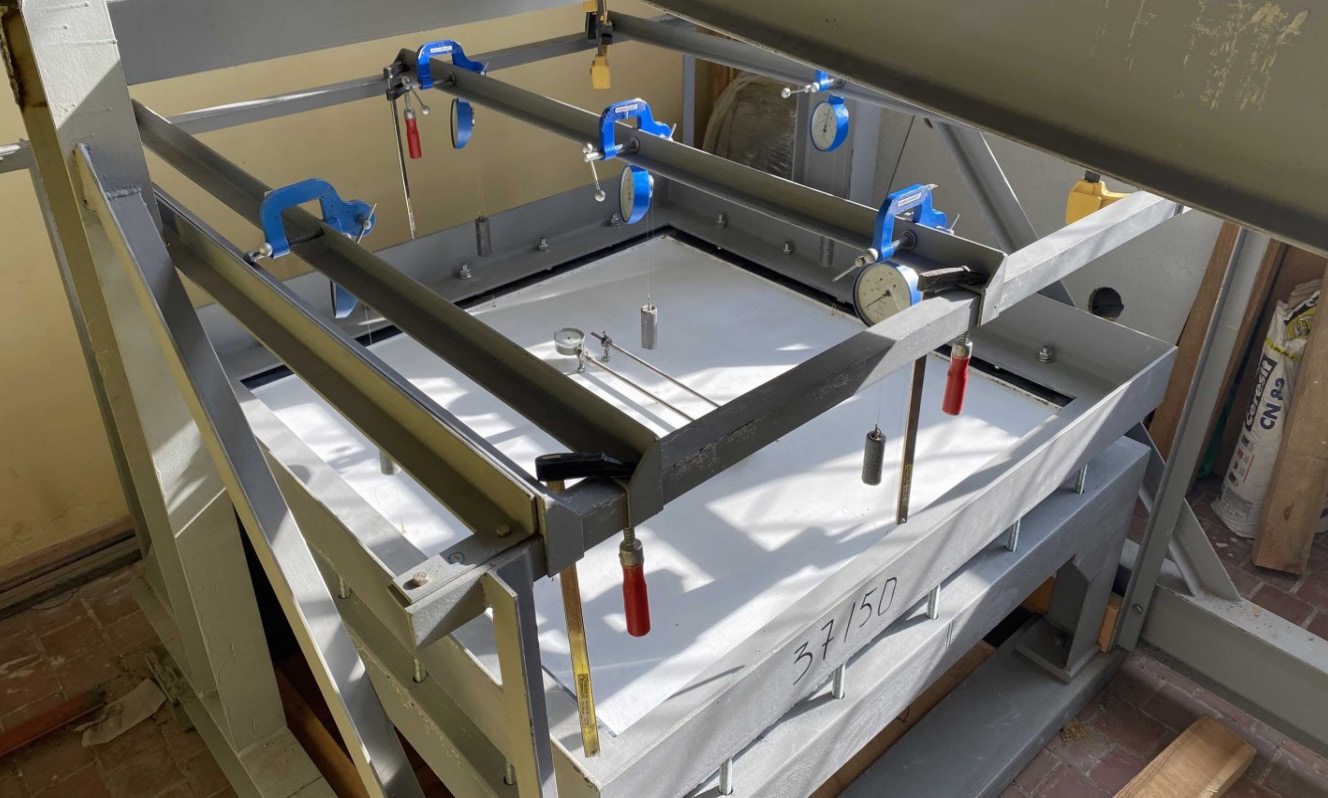 Рис. 2. Расстановка измерительных приборов при испытании образцов плит