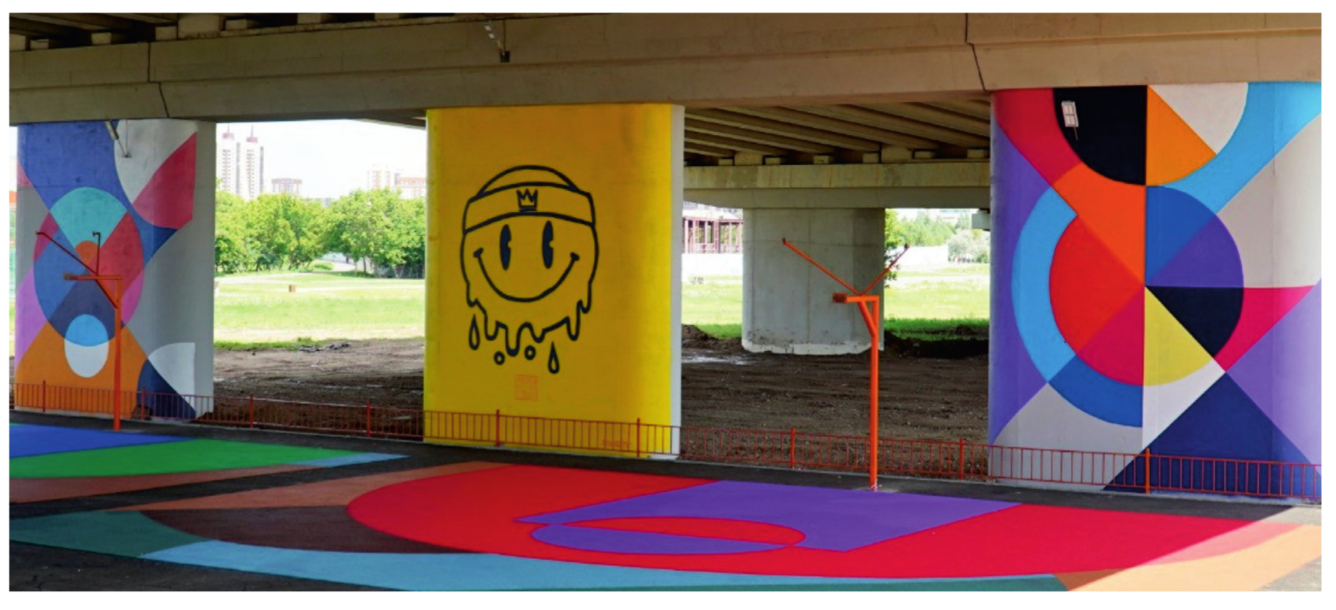 Второй пример организации комфортного общественного пространства – территория под мостом «Архар» (рис. 3). Как утверждает руководитель Центра урбанистики Елнар Базыкен, это один из примеров осуществленных общественных пространств. Созданные объекты формируют собственную атмосферу и побуждают развитие творческого кластера у жителей города [10].