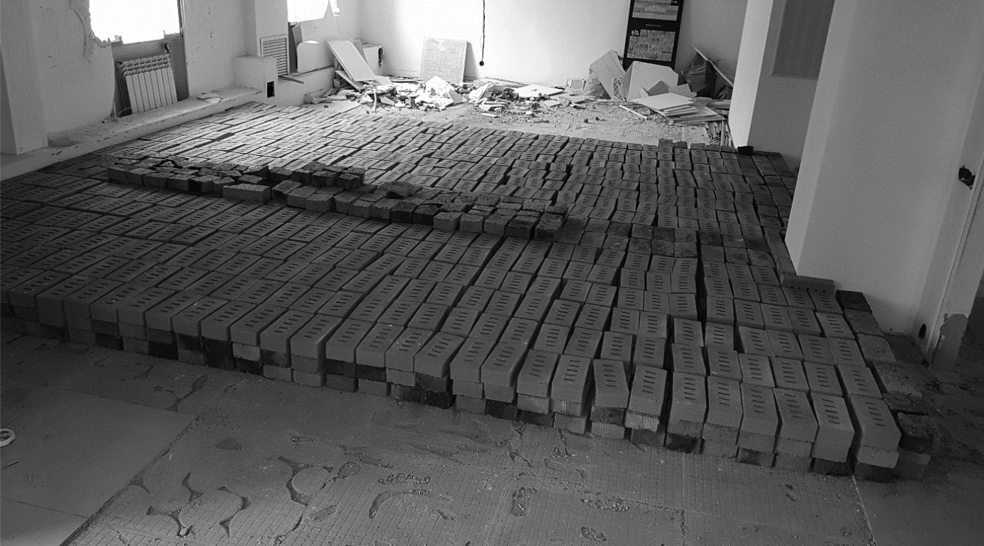Нагружение перекрытия производилось полнотелыми одинарными керамическими кирпичами, укладываемыми по площади загружаемого перекрытия равномерно. По результатам контрольных взвешиваний усредненный вес одного кирпича составил 3,258 кг (минимальное значение – 3,063 кг, максимальное – 3,724 кг). Площадь загружения перекрытия – 13,0 м2.