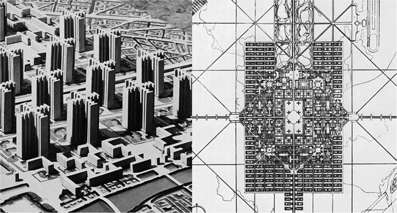 Происхождение модернистской модели города во многом ассоциируется с градостроительными концепциями Ле Корбюзье (и его «принципами современной архитектуры»), представлявшим себе город как некий «правильно спланированный» интеллектуальный продукт, весь пронизанный привнесенной извне заботой о горожанах. Контент этой заботы определялся социалистическими представлениями о коллективном благополучии, но на практике, как выяснилось в дальнейшем, представлял собою вызов органичному, естественному и поэтому максимально эффективному развитию города.