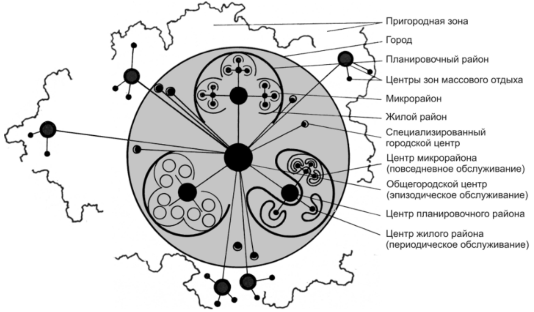Рис. 3. Схема трехступенчатого обслуживания в масштабе города. СССР, начало 60-х годов 1
