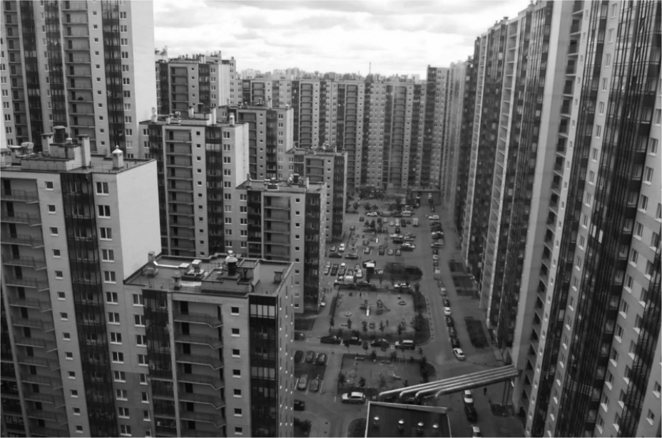 Современная история постиндустриального города во многом обусловлена отказом от государственного планирования и переходом к коммерческому освоению территории. Перемена экономической платформы существенным образом повлияла на сохранение изначальной концепции микрорайона как территории с умеренной ориентацией на идею «Лучезарного города» с его изобилием солнца и зеленых массивов, с достаточным уровнем обеспечения дошкольным и школьным обслуживанием. Да, микрорайон не был городом, но его изначальные ценности как социальной стратегии до сих пор ставятся в заслугу архитекторам и доктринерам социалистического толка.