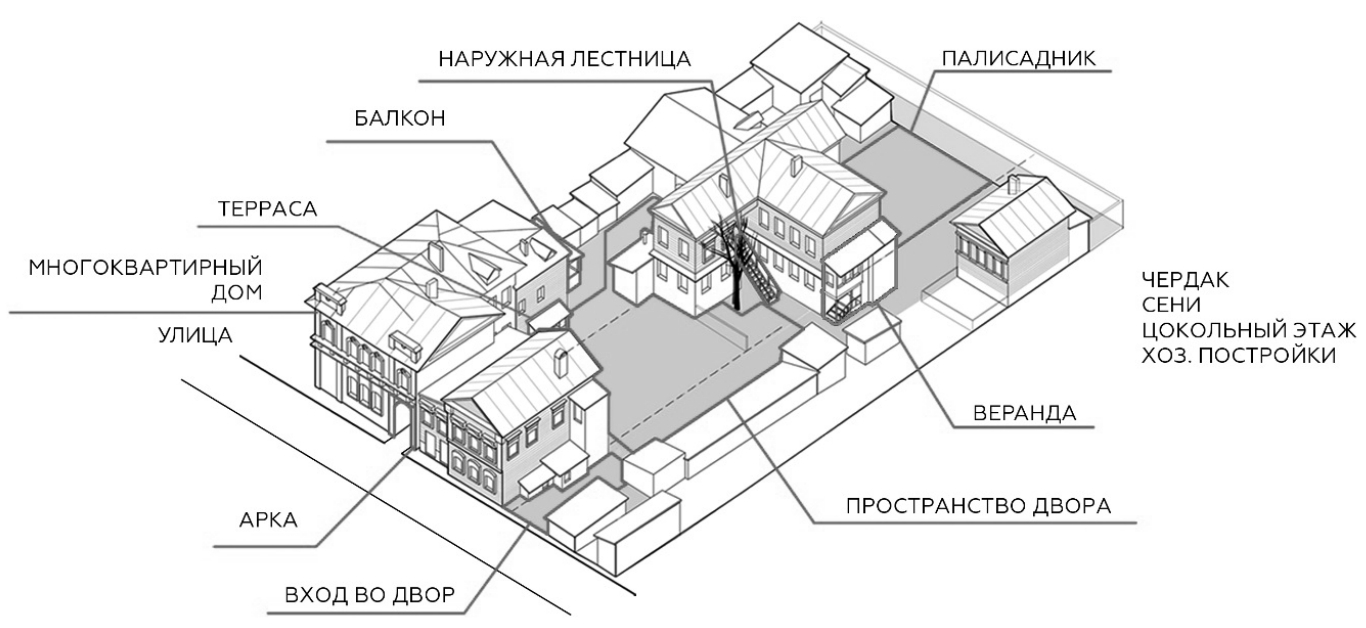 Рис. 9. Типологический паттерн и морфотип исторического двора на примере Самары