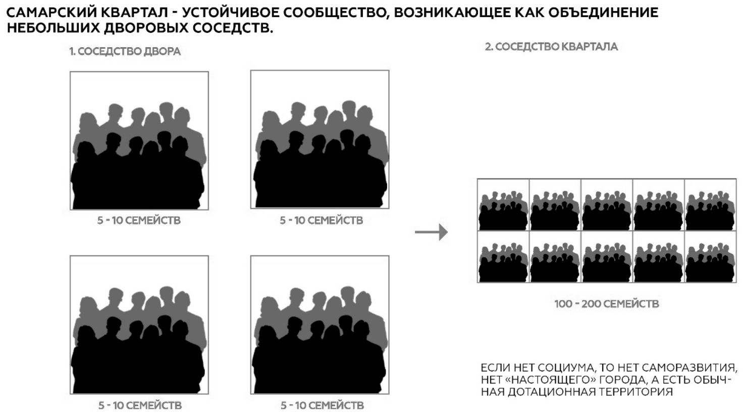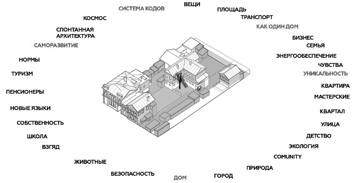 Проблема, однако, заключается в том, чтобы найти ресурсы возобновления алгоритма перехода от небольших соседств, например дворовых, к последовательно увеличивающимся сообществам – на уровне кварталов и более крупных локальностей. Мы можем изучить этот алгоритм как социальную стратегию настоящего города, но какими могут быть прототипы новой современной архитектурной типологии, способной к возобновлению алгоритма этой стратегии? Какие морфотипы, обуславливающие реабилитацию небольшого соседства, могут быть приняты за основу новой гуманной стратегии города вместо прагматичной и однообразной стратегии ЖК?