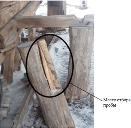 Рис. 6. Место обора пробы (Опорная стойка рамы мельницы в селе Бариновка)