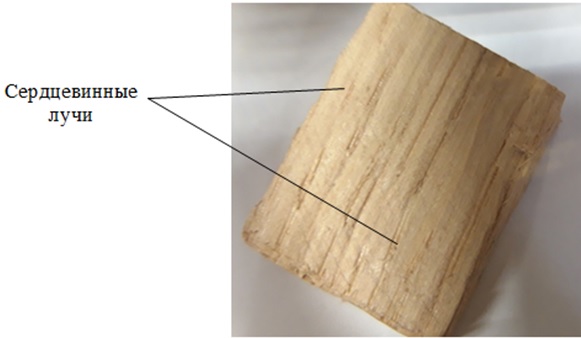 Рис. 7. Сердцевидные лучи древесины дуба