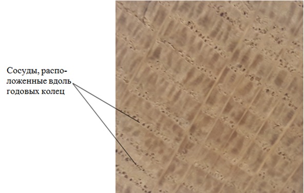 Рис. 8. Макроструктура кольцесосудистой древесины