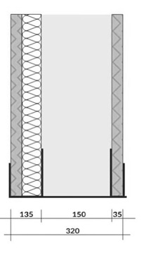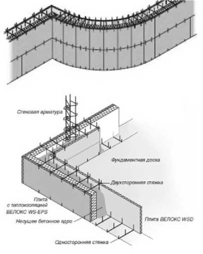Для улучшения теплотехнических характеристик в несъемной опалубке используется двухслойная плита VELOX WS-135 (рис. 3), она имеет щепоцементный слой толщиной 35 мм и приклеенный на цементном растворе утеплитель (пенополистирол) толщиной 100 мм.