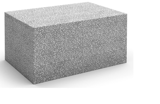 Полистиролбетон (рис. 6) является разновидностью легких бетонов и характеризуется наличием в составе следующих компонентов: воды, песка, цемента, специализированных добавок и гранул полистирола, заменяющих крупный наполнитель размером 0,7−5 мм, в зависимости от марки и класса бетона. Наполнитель получают способом однократного или многократного вспенивания суспензионного полистирольного бисера. Воздухововлекающие добавки, такие как СДО (смола древесно-омыленная), предотвращают всплытие гранул, обеспечивая однородность раствора [6]. Полистирол обладает рядом положительных характеристик: низкой влагопроницаемостью, хорошими показателями по морозоустойчивости и звукоизоляции, материал устойчив к появлению микроорганизмов, плесени и гнили (табл. 7). Полистиролбетон является негорючим материалом, но высокая температура воздуха может привести гранулы к разрушению и соответственно к потере прочности конструкции [7]. Для стеновых ограждающих конструкций обычно используется марка полистиролбетона D500 (табл. 7).