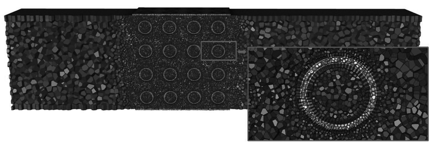 В настоящей работе предложена методика расчёта теплообменного устройства с TPMS-наполнением на основе вычислительного эксперимента в ANSYS Fluent. В качестве примера рассматривается участок теплообменника, в котором для интенсификации теплообмена применяются ребра в форме трижды периодической минимальной поверхности Шварца Primitive.