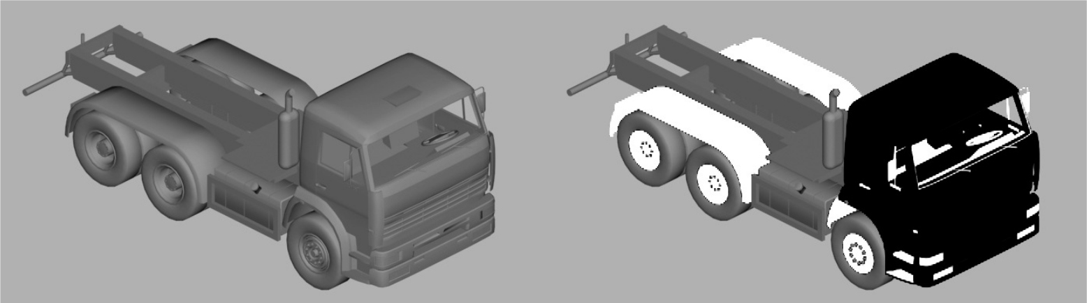 Рис. 1. Графический анализ цифровой модели промышленного изделия (грузовой тягач) на наличие или отсутствие «форм свободного выбора» и «форм ограниченного выбора»