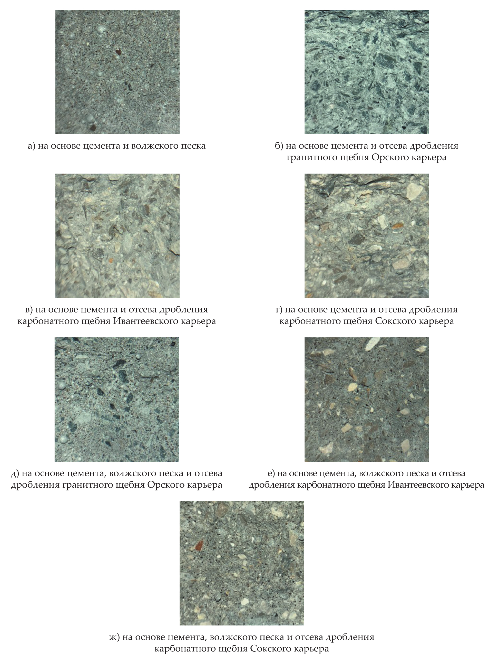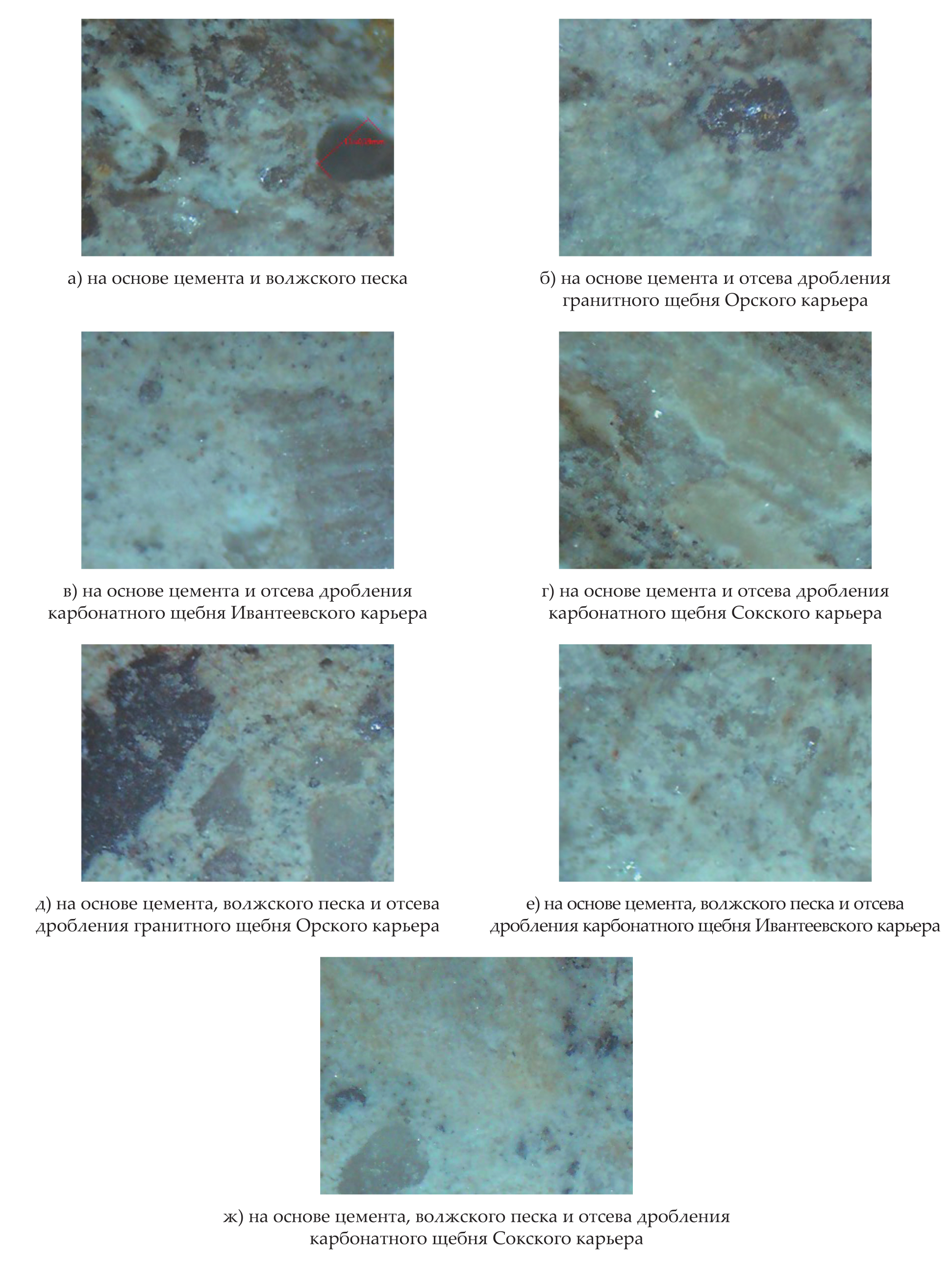 Такое же расположение зерен заполнителя видно и на рис. 1, в, который показывает макроструктуру, при 10-кратном увеличении, для образца на отсеве дробления щебня Ивантеевского карьера.