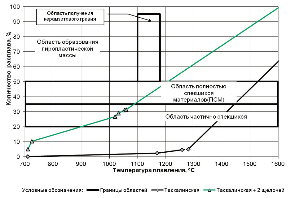 Рис. 2. Динамика образования расплава для глины Таскалинского месторождения