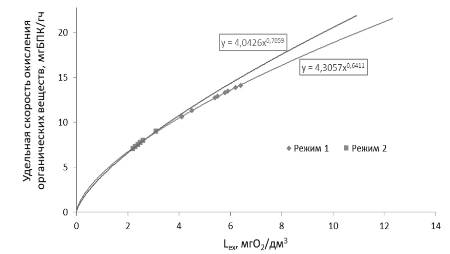 Режим | Удельная скорость окисления органических загрязнений | Удельная скорость нитрификации | ||