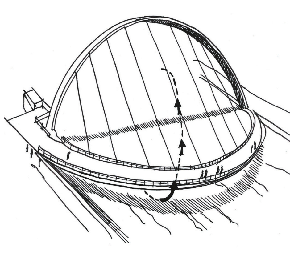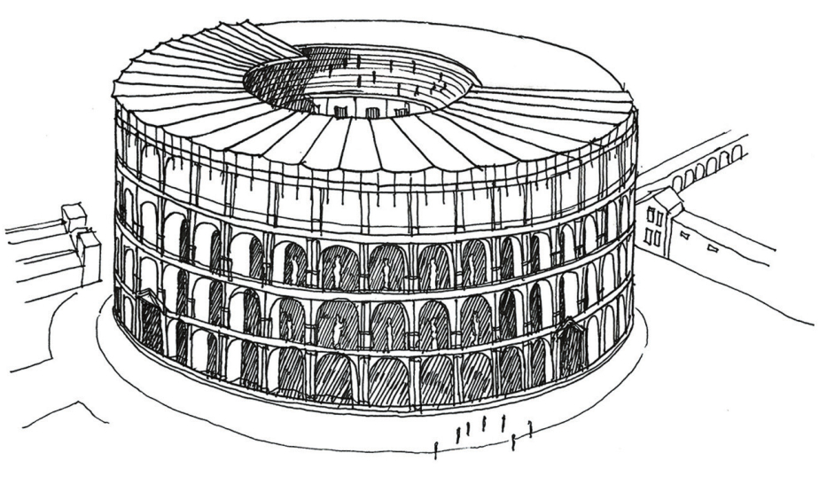 Мобильное жилье было не единственной предпосылкой к возникновению динамической архитектуры. Примером второй категории объектов динамической архитектуры, относящихся к ранним историческим примерам, является трансформируемое покрытие. Из истории римской культуры известны примеры использования гибкого материала покрытия в качестве трансформируемого элемента конструкции. Это были тенты, которые покрывали крыши театров и амфитеатров, а по некоторым источникам еще и внутренние дворы, улицы и площади, защищая людей от палящего солнца или непогоды [11]. В Римском Колизее (рис. 2) сохранился верхний ряд камней-держателей с отверстиями, предназначенный для натягивания тента. Трансформируемые крыши многопролетных сооружений, претерпев многочисленные модификации под влиянием времени, дошли и активно используются сегодня.
