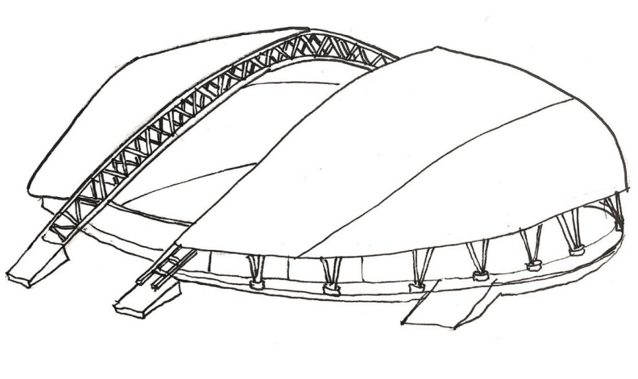 Современные стадионы зачастую имеют трансформируемые покрытия. Например, Олимпийский стадион «Фишт» в Сочи (рис. 3) имеет подвижную крышу, которая защищает спортивное сооружение от осадков. Еще один стадион – Магнолия, расположенный в Шанхае, имеет раздвижную конструкцию крыши, которая в раскрытом состоянии напоминает очертаниями цветок магнолии – национальный символ города. Крыша стадиона полностью раскрывается за 8 минут [12]. Стадион «Фельтинс-Арена», также имеющий раздвижную крышу, был построен в начале двухтысячных годов в Германии. Еще один известный стадион с трансформируемой крышей – стадион «Уэмбли» в Лондоне, в 2007 г. [5]. В современном мире появились не только трансформируемые покрытия крыш, но и фасадов. Их основная функция осталась неизменной – защита от палящих лучей солнца и регулирование микроклимата в здании [13].