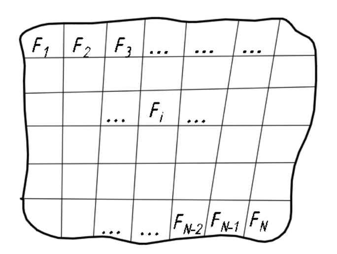 Рис. 2. Схема разделения площадки на участки (картограмма предельных сопротивлений свай Fᵢ )