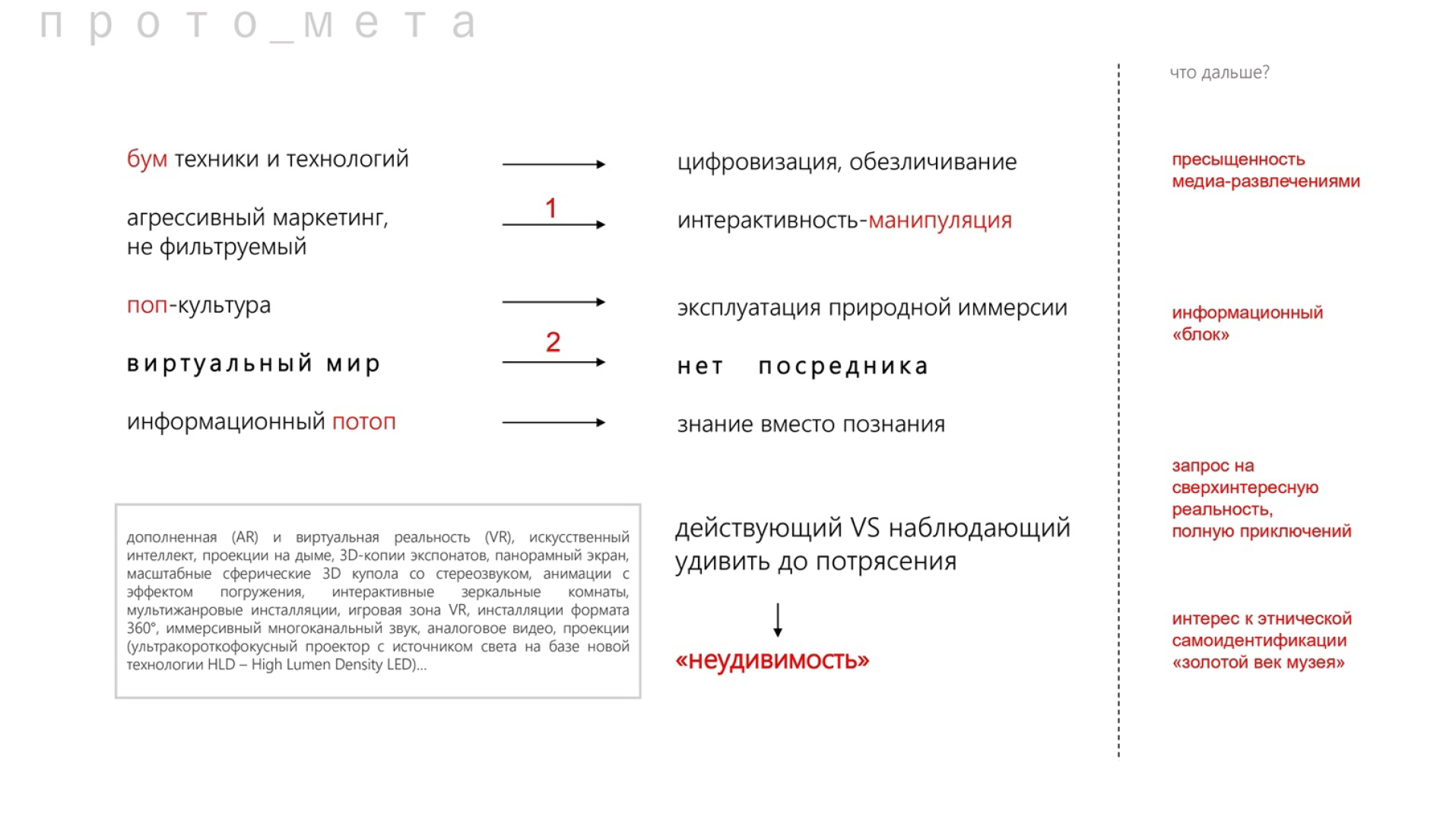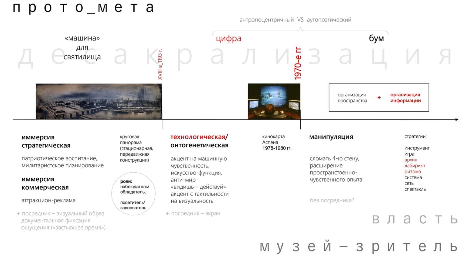 Рис. 1. Протометамузей. Десакрализация. Иммерсия стратегическая / иммерсия коммерческая, технологическая / онтогенетическая, манипуляция