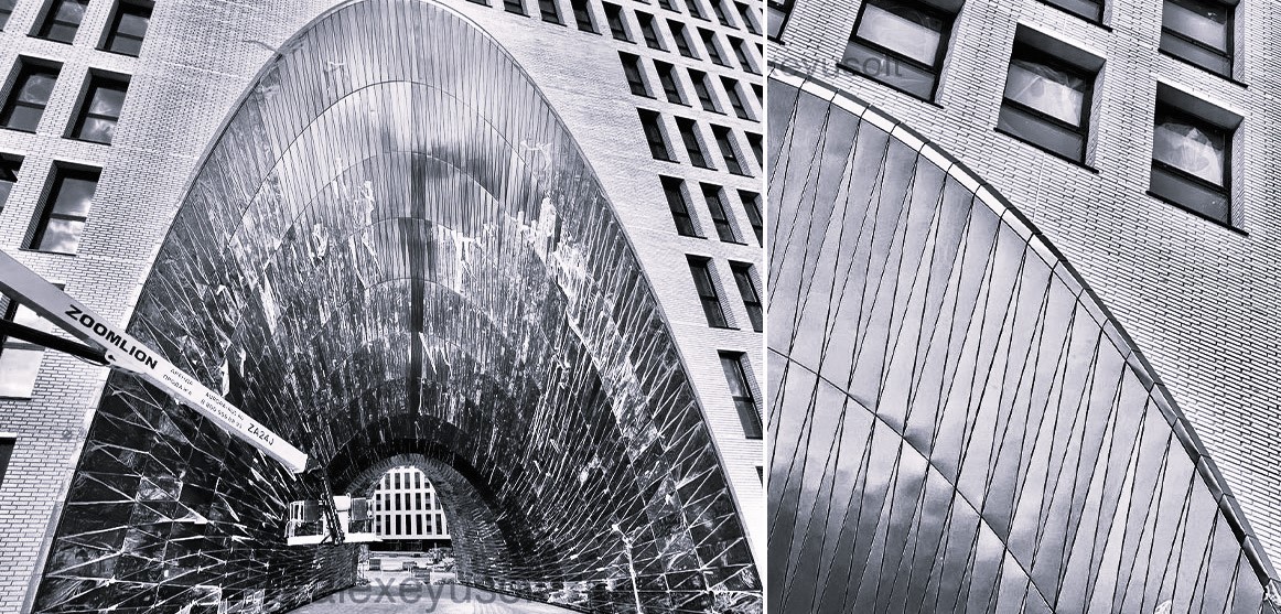 Рис. 4. Керамическая плитка, отпечатанная на 3D-принтере, и применение ее в Арке в Делфте, 2019 г.